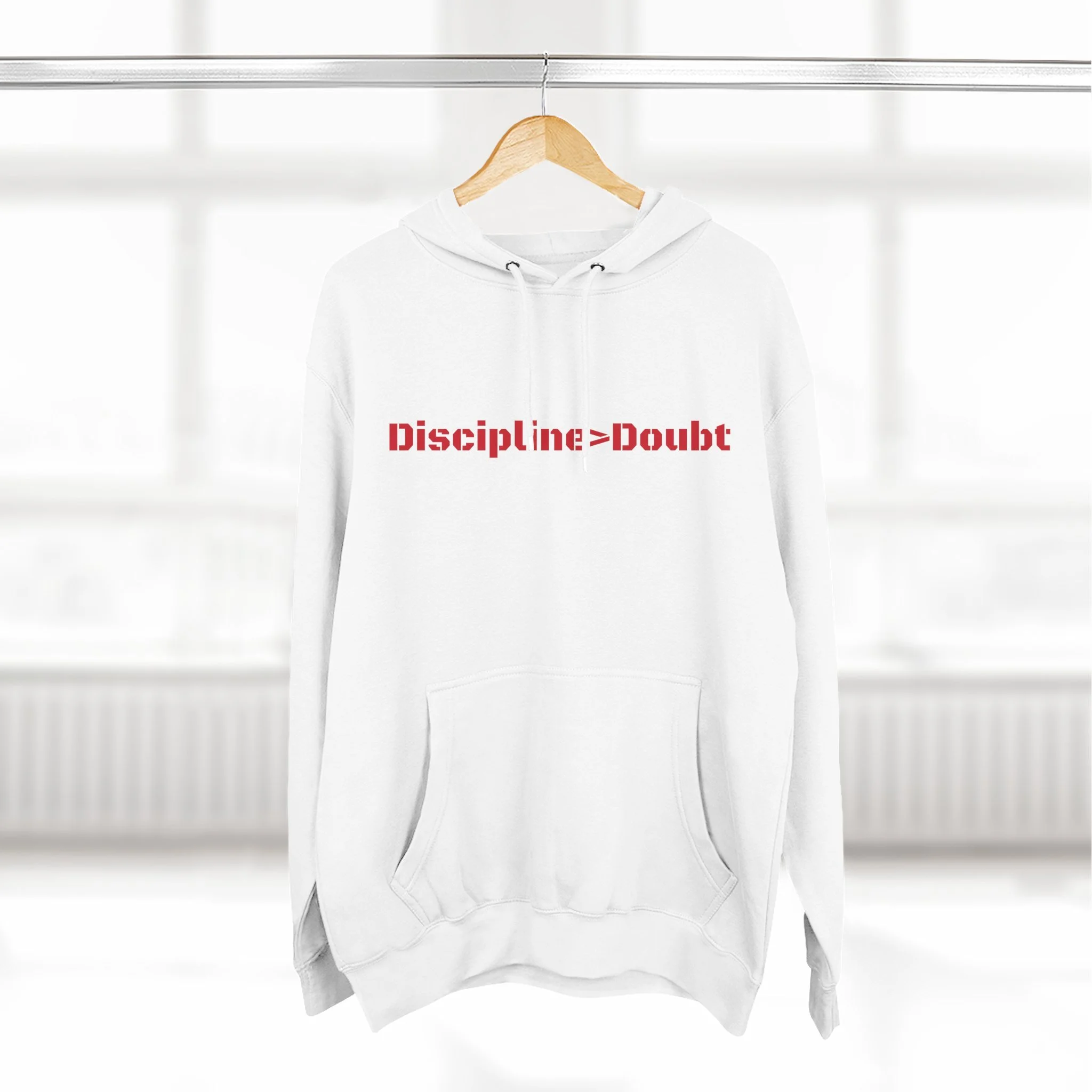 Cozy up in style with this Three-Panel Fleece Hoodie, designed for both comfort and motivation. This hoodie offers a relaxed vibe, perfect for casual outings, exercise sessions, or lounging at home. Ideal for anyone seeking inspiration in their daily life, it serves as a reminder to prioritize discipline over doubt.